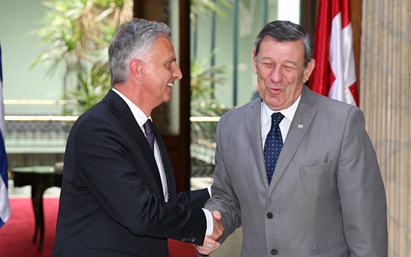 The day after, Mr Burkhalter will hold bilateral talks in Montevideo with Uruguayan Foreign Minister Rodolfo Nin Novoa – the first working visit by a member of the Federal Council to Uruguay since 2005. Switzerland and Uruguay, which is currently a member of the UN Security Council, are working together on various matters within the UN. Uruguay is often referred to as 'the Switzerland of South America' and has a long-standing history of close relations with Switzerland. A large number of descendants of Swiss emigrants live in Uruguay to this day. Mr Burkhalter plans to meet members of the Swiss community in the city of Nueva Helvecia.
