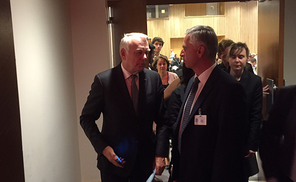 Il consigliere federale Didier Burkhalter saluta il ministro degli esteri olandese Bert Koenders. © DFAE
