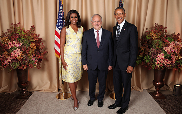 Il presidente della Confederazione Johann N. Schneider-Ammann con Barack et Michelle Obama. © US White house