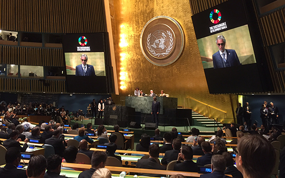 Nel corso della settimana ministeriale (high level week) a New York, il consigliere federale Didier Burkhalter rappresenta la Svizzera nel quadro di vari eventi dedicati a tematiche di attualità. © DFAE