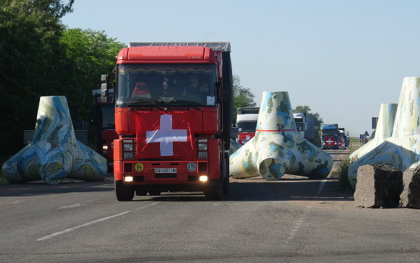 06.06.2017 – I camion trasportano materiale medico e prodotti chimici per la depurazione dell’acqua. © DFAE