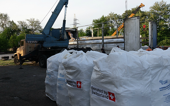13.09.2016 – La Svizzera ha inviato in Ucraina orientale un nuovo convoglio umanitario con 3500 tonnellate di sabbia di quarzo per filtrare e rendere potabile l’acqua. © DFAE