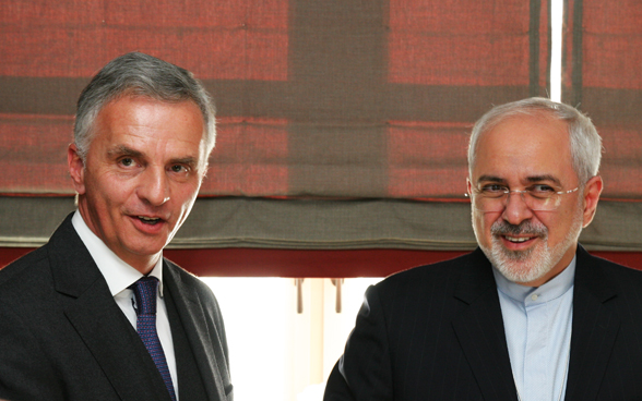 Il consigliere federale Didier Burkhalter a colloquio con il ministro degli esteri iraniano Jawad Zarif. © DFAE