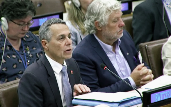 Il consigliere federale Ignazio Cassis alla 74esima AG dell’ONU a New York. © DFAE